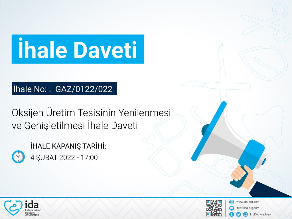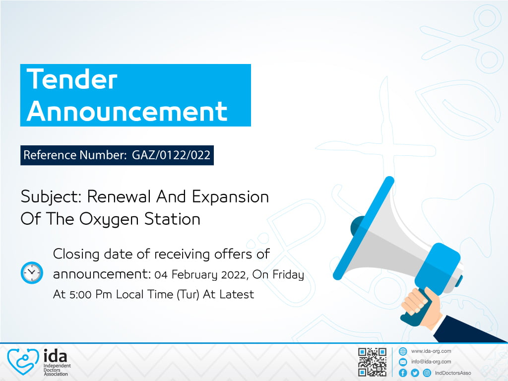 Bağımsız Doktorlar Derneği Türkiye’deki gerçek toptancı tedarikçi şirketlerden Suriye’de bulunan Oksijen Üretim Tesisinin Yenilenmesi ve Genişletilmesi için fiyat İhale daveti etmektedir.
